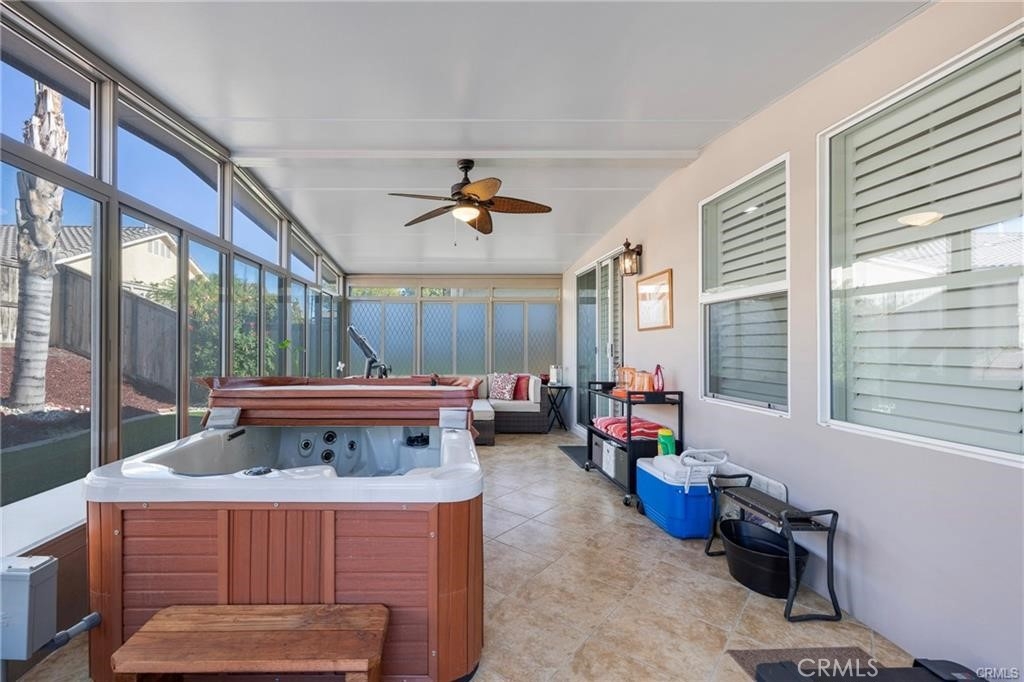 Beautifully maintained single-story home offering approximately 1,660 sq ft of thoughtfully designed living space. This inviting residence features 3 bedrooms plus a private office/den with elegant glass doors, 2 bathrooms, and a spacious 2-car garage. The open-concept layout makes this home ideal for both everyday living and entertaining. The kitchen showcases crisp white cabinetry, generous counter space, and a functional design that flows seamlessly into the dining area and family room. Perfect for hosting guests and family gatherings, this space truly serves as the heart of the home. The family room is warm and welcoming, complete with a cozy fireplace that adds charm and comfort. The primary suite offers a relaxing retreat with wonderful natural light and a beautifully appointed bathroom featuring a separate shower and soaking tub. Each room throughout the home is equipped with large windows that fill the space with bright, natural light. One of the standout features is the perfect glass screened sun room — a bright and airy extension of the home. This versatile space is ideal for a private pool room, home gym, art studio, or a peaceful reading nook. It offers year-round enjoyment and endless possibilities. Step outside to a spacious patio area with low-maintenance landscaping, providing ample room for outdoor dining, entertaining, or customizing your own backyard oasis. Located in a desirable community with resort-style amenities, residents enjoy access to tennis courts and a fully equipped gym. The HOA is called The Oasis, offering a lifestyle that combines comfort, recreation, and convenience. With charming curb appeal, abundant natural light, and exceptional indoor-outdoor living, this home is a true standout.