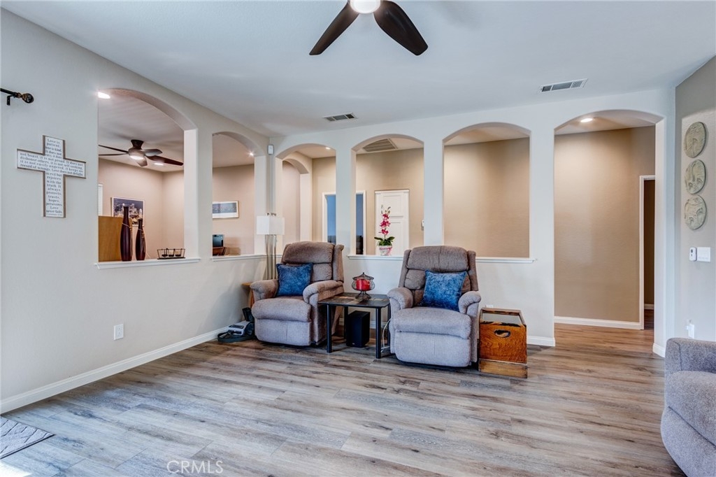 Huge Price Reduction!! Gorgeous "Newly Remodeled" Oasis 55+ Home. With Very Low Taxes, Guard Gated Entry & Over $150k spent in Recent Upgrades. This Fabulous Open Concept boasts LVP Flooring, Formal Entry, Formal Dining Room, Spacious Living Room & Chefs Kitchen, 2 Large Bed Rooms, 2 Bathrooms & Bonus Room/Office (Possible 3rd bedroom). The Stunning Chefs Kitchen includes a 12 ft Island with Seating & Extra Storage, Soft Close Cabinet Hinges, Drawer Sides, Pullout Spice Rack, Lazy Susan, Quartz Counter Tops, Stainless Steel Appliances, Custom Pendant Lighting and a Built in Desk that is perfect for working at home! The Spacious Primary Bedroom has Custom Drapery, Custom Paint, Ceiling Fan, Custom Glass Barn Door and a Roomy Walk in Closet. The Remodeled Bathroom with Extra Large Roll in Shower and Double Vanity really set this home apart!