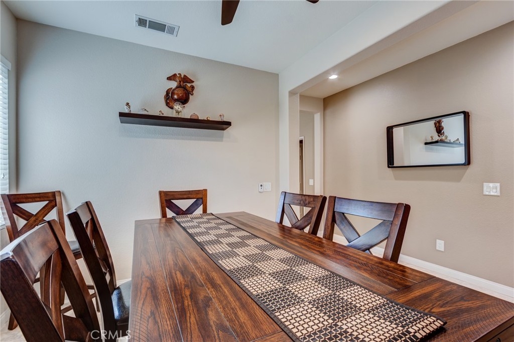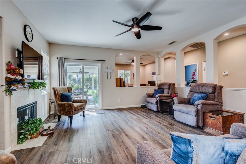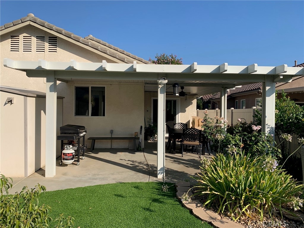 Take a step out back and enjoy the peace and quiet in this Beautiful Private Retreat with mature trees & plants, New Artificial Turf, Large Covered Patio, new ceiling Fan, Storage Shed, New Vinyl Fencing and an Orkin Termite Prevention Contract till 4/1/2030. Wired Ring System & Led Light Motion Sensor. The Garage has Built Cabinets, New Garage Remotes & New Lighting. The Oasis HOA amenities include Swimming Pool, Spa, Tennis, Fitness Center, Library, Media Room, Billiard Room, Social Clubs, Instructor-led Classes and Much More! The HOA includes Front Yard Water & Maintenance & Trash. Located near Costco, Super Target/Shopping, Restaurants, Medical, Parks, Menifee Lakes Golf Course, Temecula Wineries and the 215 & 15 freeways. With an Extensive List of Upgrades, this Beautiful Home is Ready to Enjoy!!