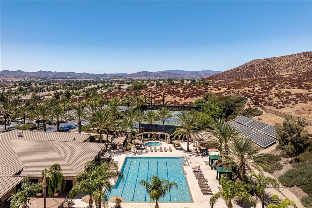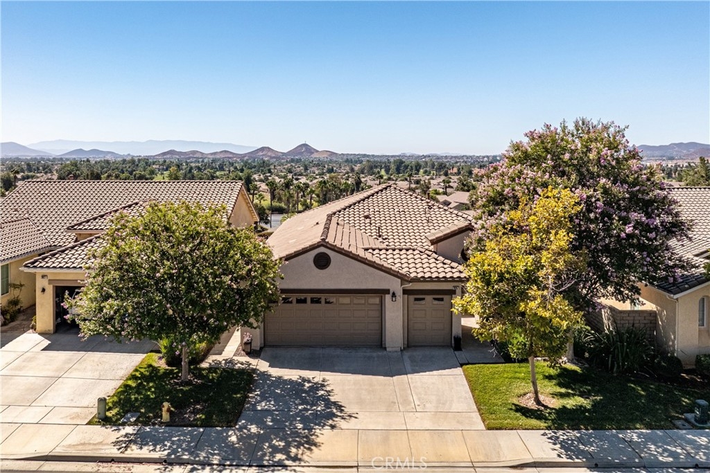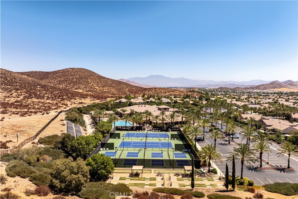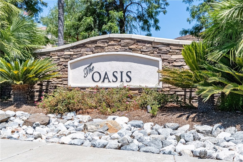 This Solar Home is in the Desired Community of the Oasis. This is a 3 Bedroom and 2 Bathroom Home with a 2 Car Garage. This Popular Floor Plan is located on a Quiet Cul-De-Sac & is Ideal for Entertaining. As you enter the Home you are Greeted by Bright, Natural Lighting, Awesome Views, a Custom Mural in the Great Room that brings Serenity of the Coast to You, Custom Tile in the the Entryway, a Large and Bright Kitchen with Granite Counters with a Full Back Splash, Popular White Cabinetry with Pull Out Organizers, an Island, Double Ovens, a Walk-In Pantry, and a Breakfast Bar that Overlooks the Spacious Great Room for Entertaining with Family and Friends. Fabulous Great Room with Crown Molding featuring a Dining Area, Breakfast Nook, Sitting Area, and a Gas Fireplace. The Master Bedroom has Gorgeous Views, Crown Molding, a Ceiling fan, Oversized Ensuite Bathroom with an Upgraded Stand-Alone Bathtub, Walk-In Shower, Dual Sinks, and a Large Walk-In Closet. The rear sliding door off the Great Room leads You to the Magnificent Views for Miles, the California Room and Alumna-wood Patio, and Artificial Turf that make this Backyard the Ultimate in Low Maintenance. A Great Place to Relax and Enjoy the Menifee 4th of July Spectacular Fireworks Show as an Added Bonus. Delightful Over-Sized Laundry area with Pull Out Organizer Cabinets. Exterior Garage with Plenty of Storage. Bring your Golf Cart for the 3rd Car Garage! There is a Small, Peaceful Courtyard in the Front of the Home. HOA covers Front Yard landscape Maintenance and Water as well as Trash service. All this and More, In a setting of the Menifee Valley conveniently located to Southern California Wineries, Beaches, Mountains, and Deserts. Enjoy all the Shopping, Restaurants, and Freeways within Minutes. Enjoy the Resort Style Living in The OASIS! This is a 55+ Community. This Resort like Gated Community features a 22,000 sqft clubhouse (est), Banquet Room, Library, Computers, Fitness Center, Tennis Courts, Bocce Ball Courts, Shuffleboard, Billiards, BBQ Areas, Outdoor Pool, Jacuzzi, & all the Other Amenities one Expects from a Four-Star Resort which is adjacent to a Public 36 Hole Championship Golf Club. An Absolute Must See! Turnkey! Low Taxes and NO Mello Roos! Seize the Opportunity for this rare VIEW Property!