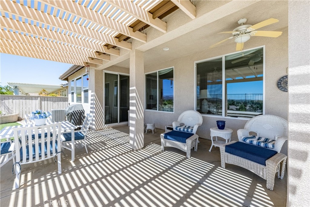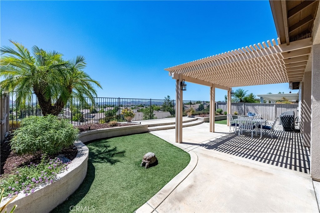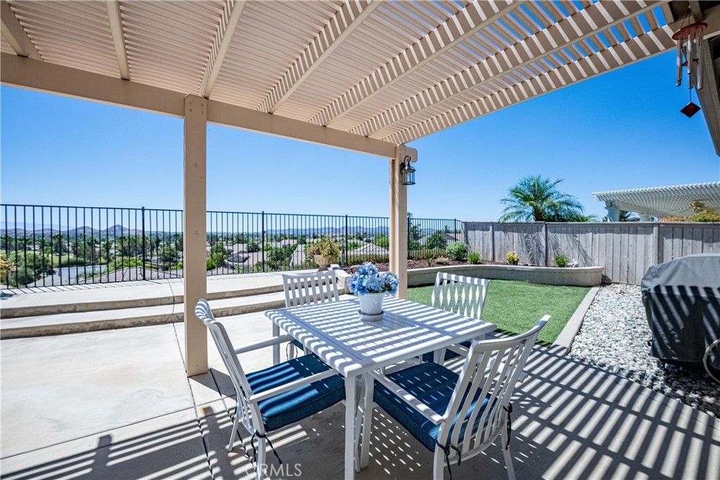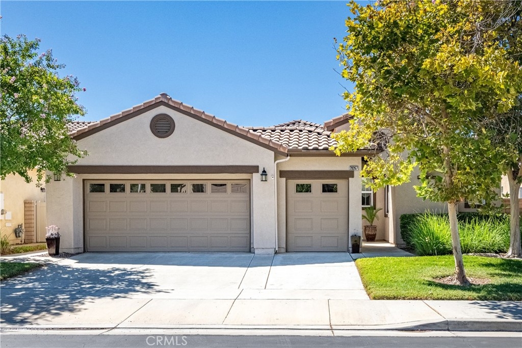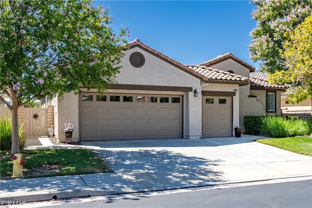 This Solar Home is in the Desired Community of the Oasis. This is a 3 Bedroom and 2 Bathroom Home with a 2 Car Garage. This Popular Floor Plan is located on a Quiet Cul-De-Sac & is Ideal for Entertaining. As you enter the Home you are Greeted by Bright, Natural Lighting, Awesome Views, a Custom Mural in the Great Room that brings Serenity of the Coast to You, Custom Tile in the the Entryway, a Large and Bright Kitchen with Granite Counters with a Full Back Splash, Popular White Cabinetry with Pull Out Organizers, an Island, Double Ovens, a Walk-In Pantry, and a Breakfast Bar that Overlooks the Spacious Great Room for Entertaining with Family and Friends. Fabulous Great Room with Crown Molding featuring a Dining Area, Breakfast Nook, Sitting Area, and a Gas Fireplace. The Master Bedroom has Gorgeous Views, Crown Molding, a Ceiling fan, Oversized Ensuite Bathroom with an Upgraded Stand-Alone Bathtub, Walk-In Shower, Dual Sinks, and a Large Walk-In Closet. The rear sliding door off the Great Room leads You to the Magnificent Views for Miles, the California Room and Alumna-wood Patio, and Artificial Turf that make this Backyard the Ultimate in Low Maintenance. A Great Place to Relax and Enjoy the Menifee 4th of July Spectacular Fireworks Show as an Added Bonus. Delightful Over-Sized Laundry area with Pull Out Organizer Cabinets. Exterior Garage with Plenty of Storage. Bring your Golf Cart for the 3rd Car Garage! There is a Small, Peaceful Courtyard in the Front of the Home. HOA covers Front Yard landscape Maintenance and Water as well as Trash service. All this and More, In a setting of the Menifee Valley conveniently located to Southern California Wineries, Beaches, Mountains, and Deserts. Enjoy all the Shopping, Restaurants, and Freeways within Minutes. Enjoy the Resort Style Living in The OASIS! This is a 55+ Community. This Resort like Gated Community features a 22,000 sqft clubhouse (est), Banquet Room, Library, Computers, Fitness Center, Tennis Courts, Bocce Ball Courts, Shuffleboard, Billiards, BBQ Areas, Outdoor Pool, Jacuzzi, & all the Other Amenities one Expects from a Four-Star Resort which is adjacent to a Public 36 Hole Championship Golf Club. An Absolute Must See! Turnkey! Low Taxes and NO Mello Roos! Seize the Opportunity for this rare VIEW Property!