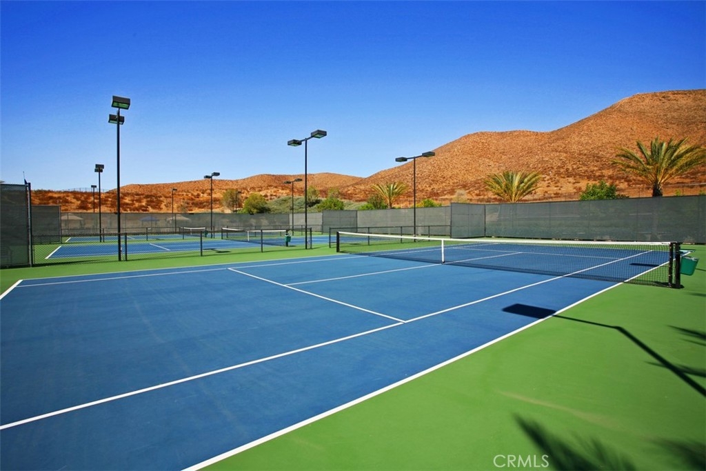 Per the association site: "At The Oasis, a 22,500 square-foot clubhouse and outdoor recreation complex is the centerpiece for all community social and fitness activities. The clubhouse includes a fitness center, grand ballroom with stage, arts and crafts studio, billiard room and library. Outside, residents enjoy the sunny southern California weather on the tennis, bocce ball and shuffleboard courts. Plus, an outdoor pool and spa, barbecue area and amphitheater are available as well." Additionally, The Promenade at Temecula is only twenty minutes from The Oasis. Temecula wine country is approx. 30 miles south. Plus, the community is located within approx. 10 miles of Diamond Valley Lake Reservoir and Lake Elsinore.