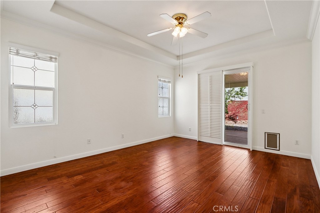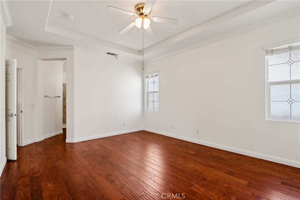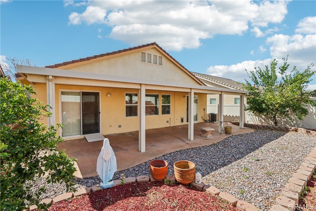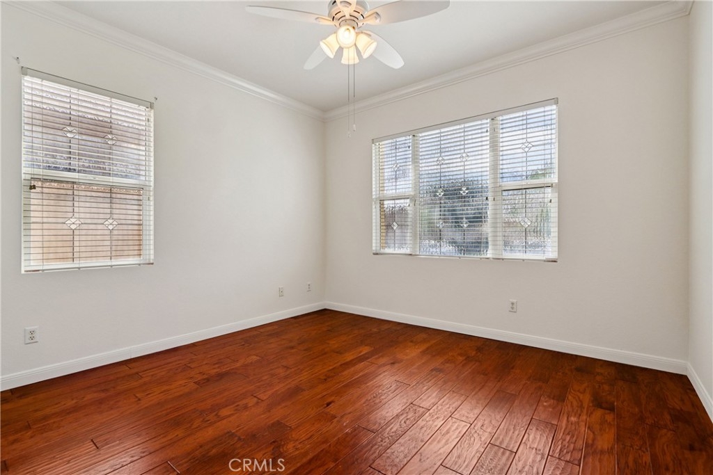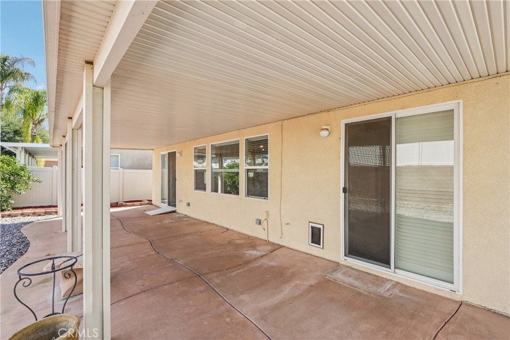 Welcome to resort-style living in the highly desirable Oasis 55+ community — where comfort, convenience, and low-maintenance living come together beautifully. This meticulously maintained home offers 2 bedrooms plus an optional 3rd bedroom with elegant French doors — perfect for a home office, den, hobby room, or guest space. With 2 full bathrooms, including a spacious primary bath with dual sinks and tub/shower combo, the layout is both functional and inviting. Step through the welcoming entry hallway into a light-filled great room with fireplace and built-in media niche, creating the perfect space to relax or entertain. The kitchen opens seamlessly to the dining area and features upgraded cabinetry, BRAND NEW stainless steel appliances, a large island, and light Corian countertops — ideal for gatherings or casual meals. Sliding doors lead to a covered patio, extending your living space outdoors. Throughout the home, you’ll find real scraped hickory hardwood floors, crown molding, plantation shutters, ceiling fans with remote controls in every room, and thoughtful custom touches that elevate the space. The spacious primary suite includes a walk-in closet and private patio access, while the secondary bedroom offers its own private bath — perfect for guests. Additional highlights include: Extra cabinetry in the laundry room; Oversized garage with custom built-in storage; Dedicated space for a golf cart; Beautifully maintained with high-end finishes. Enjoy the benefits of LOW taxes and NO Mello-Roos, plus HOA amenities that include front yard maintenance and trash service — making everyday living easy and stress-free. Located with convenient access to golf, lakes, walking trails, and community amenities, this is more than a home — it’s a lifestyle upgrade. Don’t miss this opportunity to live the good life in Oasis. This is truly not a drive-by — you must see it in person to appreciate all it offers.