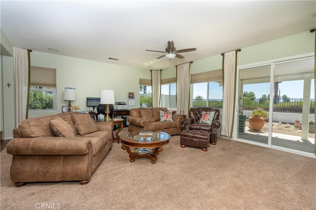Welcome to resort-style living in this beautifully updated model 2-bedroom, 2-bathroom home offering 2,139 square feet of spacious comfort. This home is located in the highly sought-after 55+ gated community, OASIS, that combines privacy, convenience, and an active lifestyle. Hiking paths are abundant, whether walking up the hillsides or along the more level paths that surround the area, you will find beauty everywhere you look. The home has been newly painted and refreshed inside and also has new appliances within three years, and all new dual pane, low E tinted windows throughout in 2024. A large covered patio allows an unobstructed view from the east to the west, so you can enjoy the beautiful sunrises and sunsets and hillside views. As you enter the home you will enjoy the open floor plan with a spacious living room and dining area. The kitchen is a chef's kitchen with beautiful slab granite counters and a wonderfully large island, also a dining area connecting the bright and airy family room, allowing views of the hillsides down below and the sunsets and sunrises too. The family room is a perfect area for both relaxing and entertaining where you can enjoy a cozy and warm fire in the fireplace on those cool winter nights. The primary bedroom offers ample storage in the huge walk in closet, and a private ensuite. Second bedroom is spacious and bright and is separate from the primary bedroom. The Oasis offers a host of amenities designed for leisure and recreation, including a sparkling pool, spa/hot tub, tennis and pickle ball courts, bocce ball, barbecue and picnic areas, gym/exercise room, all at the clubhouse that is within a short walking distance of this property. At the clubhouse, enjoy the many parties and performances held there too. There are additional facilities of a billiard room, card room, banquet and meeting rooms. For those who golf there are two championship 18 hole golf courses nearby with a practice range and putting green; there is convenient shopping, restaurants nearby and excellent highway access to the beach areas and shopping.