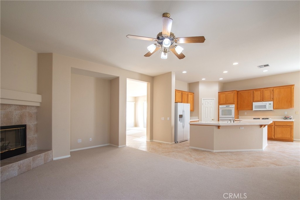 Immaculate Move-In Condition coveted Bellagio model at a premier "Over 55" gate guarded golf resort. Fresh paint inside and out as well as beautiful just installed carpeting. Diagonal tile floors through the traffic areas including the entry, halls, kitchen, dinette and 1/2 bath. From the private front courtyard this home opens into the stunning 2-story artistic turret entry where you can proceed directly from there to the immense office/den/bonus room convertible to a 3rd bedroom, the guest wing or the primary living areas. Bright open living/dining rooms to welcome and impress your relatives and friends. The chief's kitchen features a built-in gas cooktop, double ovens, a big breakfast bar island with sink, dishwasher and additional cabinets to supplement the walls and walls of kitchen cabinets, plus a large walk-in pantry. The kitchen opens to the big dinette with slider to the covered patio and the family room with tile fireplace, ceiling fan and views of a lush paseo. Elegant view master suite with ceiling fan. The master bath has a dual sink vanity, separate tub and shower, privacy commode and huge walk-in closet with mirrored doors. The guest wing includes a generous sized bedroom with ceiling fan, a wall of closets with mirrored doors, a full bath, an entry closet plus storage and linen cabinets. The laundry room has a sink and loads of cabinets. The oversized finished garage has storage cabinets galore, room for two big cars plus golf carts and/or a workshop. The private low maintenance rear yard overlooks a lush paseo and has a full width patio under a solid roof. The HOA dues include front yard maintenance, front yard water and trash pick-up. No Mello-Roos. Extraordinary community amenities including a 22,000 sq. ft. clubhouse with indoor and outdoor stages, dance floors and commercial kitchen. There is a media/card room, state-of-the art fitness center, library, computer center, multi-purpose rooms and billiard parlor. BBQ/party area set against a lovely mountain backdrop. Tropical pool and spa. Two night lighted tennis courts and four pickleball courts. Bocce, horseshoes and much, much more. Long, long list of social and recreation clubs. Something for everyone! Ideally located about an hour's drive to L.A. and Orange Counties, downtown San Diego, Idyllwild and Palm Springs. Close to Temecula, Casinos and The Wine Country.