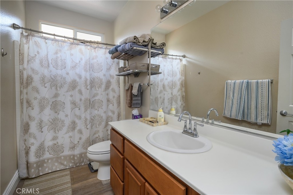The generously sized primary suite is a true retreat, featuring large picture windows, and serene golf course vistas. The luxurious en-suite bath includes dual vanities with abundant cabinetry, a dedicated makeup area, a separate shower, and a spacious walk-in closet with mirrored doors.