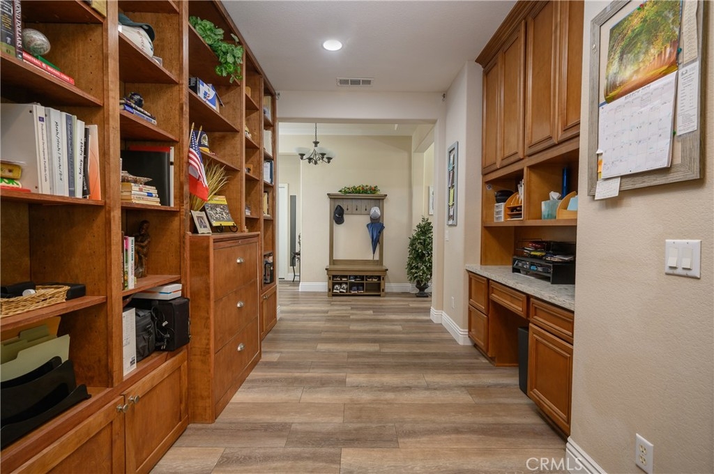 Additional highlights include a versatile office or optional third bedroom with double doors, a large guest bedroom with additional workspace or retreat, and an adjacent full bath that can serve as a second primary suite. The well-equipped laundry room offers ample cabinetry, complemented by an oversized utility room providing exceptional storage and pantry space.