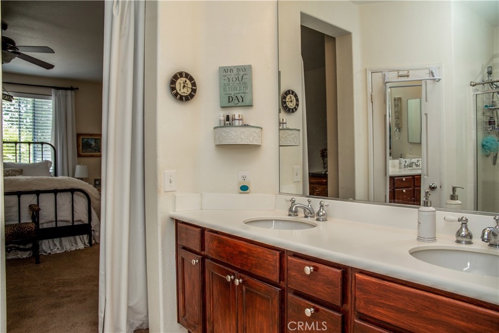 Beautiful single story home in the Oasis, the premier gated senior community in Menifee. Enter into the living room where large windows provide natural light and brighten the view through to the dining area. Kitchen has storage galore with a walk-in pantry and cabinets that have been recently updated and include pull-out shelves for easy access. A double-door entry opens to the master bedroom which has a spacious walk-in closet and a master bathroom with double vanity and glassed, walk-in shower. The second bedroom is just down the hall from a second full bathroom. Laundry is located in the hallway and is fully enclosed. Sliding doors lead to a covered patio and low maintenance back yard which is private and inviting. With this home, you also have access to all the amenities the Oasis has to offer including a beautiful clubhouse, BBQs/kitchen, pool, gym, billiards, ping-pong, tennis courts and more. The association provides front yard landscaping including watering and maintenance as well as trash service. If you’re looking for a secure and beautiful location, great neighbors and a relaxing senior lifestyle, this is it!