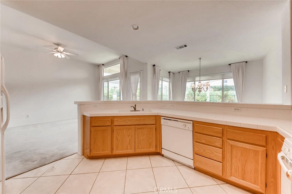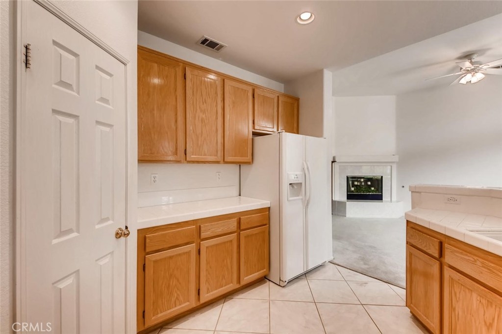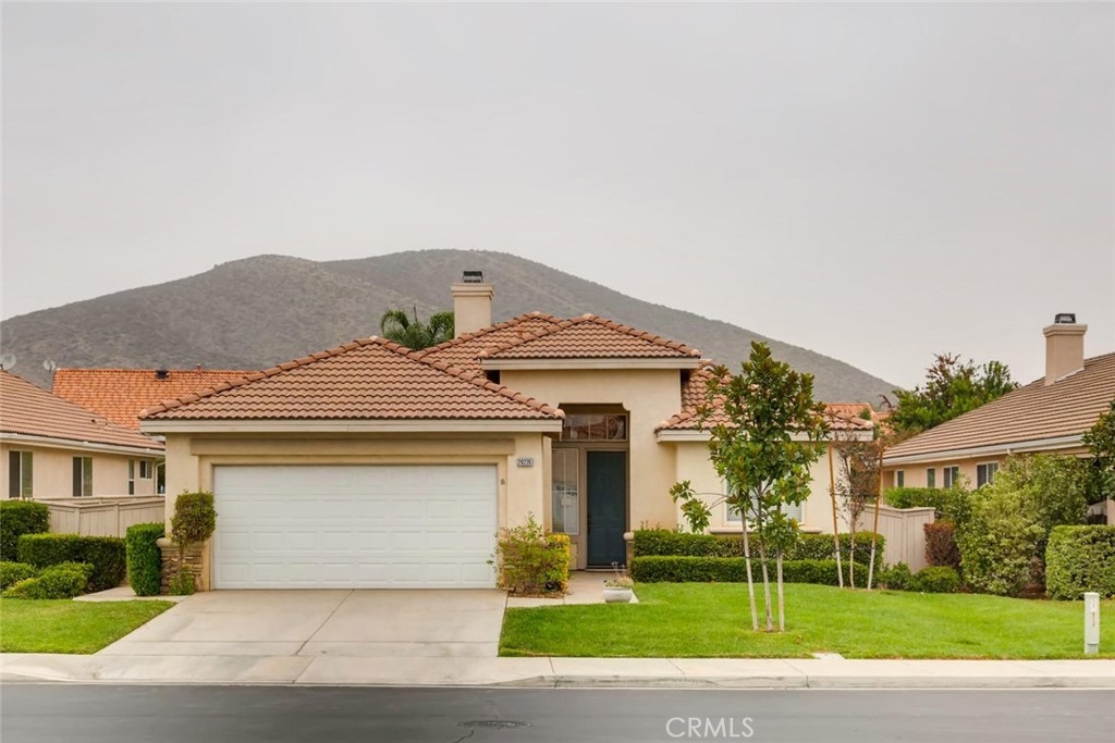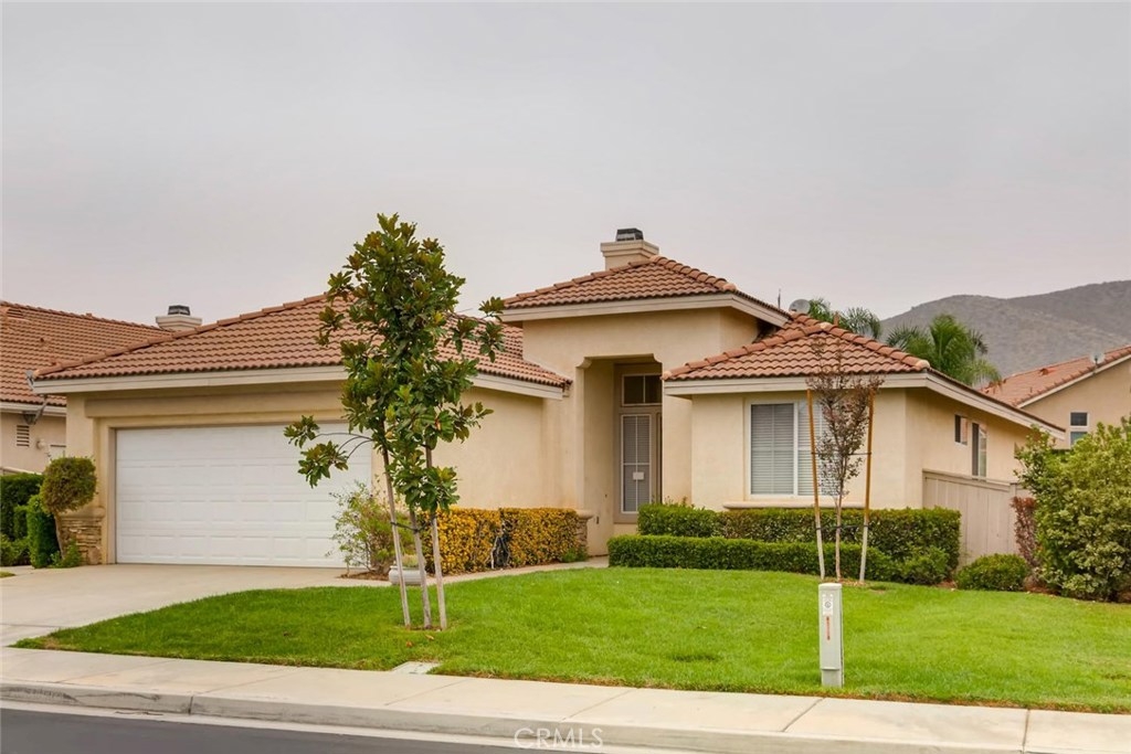 Highly desirable floor plan at a premier "Over 55" gate guarded golf resort. Great curb appeal. The wide entry has beautiful diagonal tile floors and leads to the living room featuring a raised hearth tile fireplace, built-in entertainment center and ceiling fan. Formal dining room. The kitchen overlooks both the living and dining rooms and has a long breakfast bar, diagonal tile floors and a big walk-in pantry. Elegant master bedroom with a double door entry and ceiling fan. The master bath has a dual sink vanity and walk-in closet with mirrored doors. Two generous sized guest bedrooms, one of which has a double door entry and is being used as an office without a closet. The full guest bath has diagonal tile floors. Laundry room with diagonal tile floors, sink and cabinets. Large 2-car attached garage. Full width covered patio with ceiling fan. Lush low maintenance gardens in back and at the extra wide side yards. HOA dues include front yard maintenance and trash pick-up. No Mello-Roos. Extraordinary 22,000 sq. ft. clubhouse with huge auditorium with kitchen and indoor and outdoor stages, media/card room, library, computer center, state-of-the-art fitness center and billiard parlor. BBQ/party area set against a lovely mountain backdrop. Tropical pool and spa. Two night lighted tennis courts and four pickle ball courts. Walk to markets, restaurants and plenty of shopping. Ideally located about an hour's drive to Orange and L.A. Counties, downtown San Diego and Palm Springs.