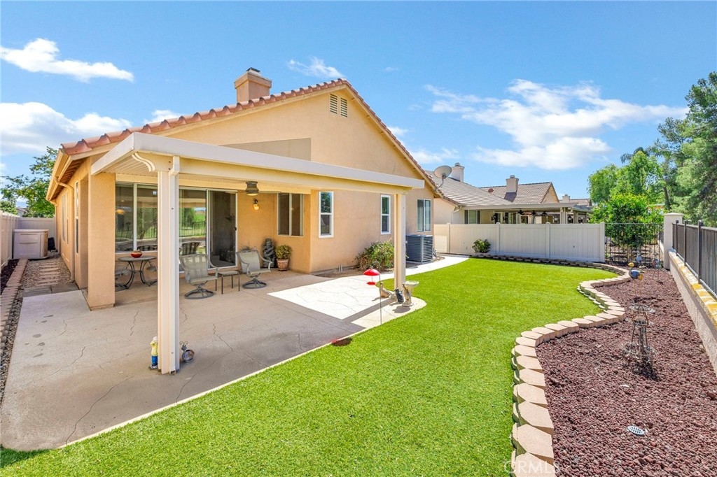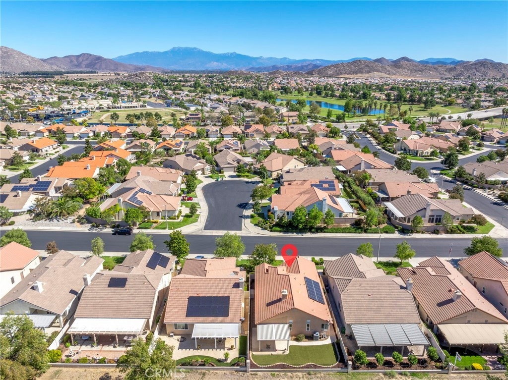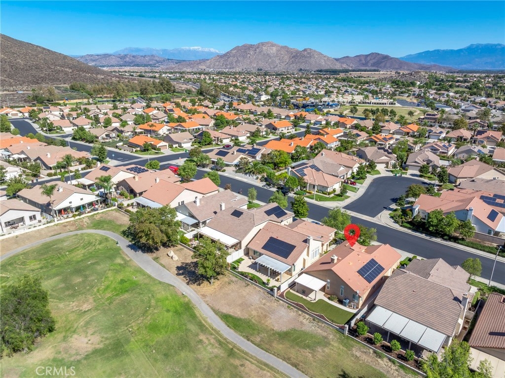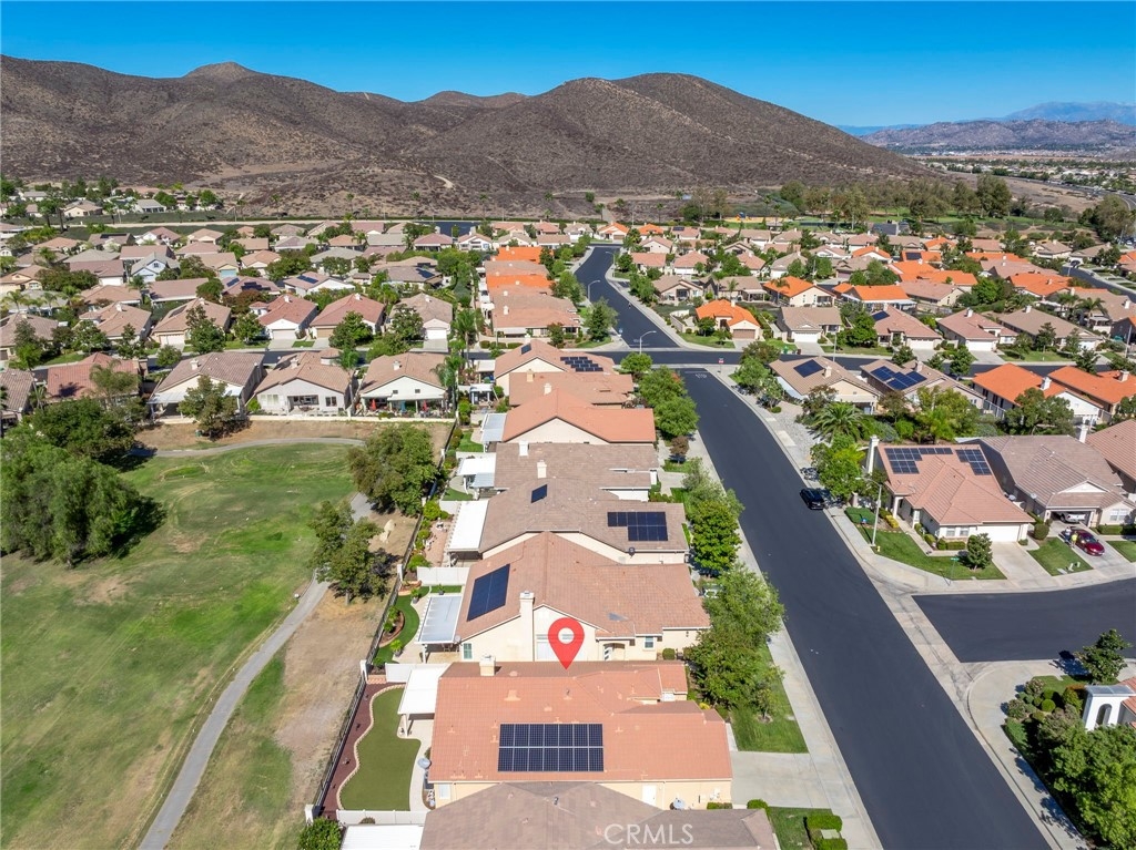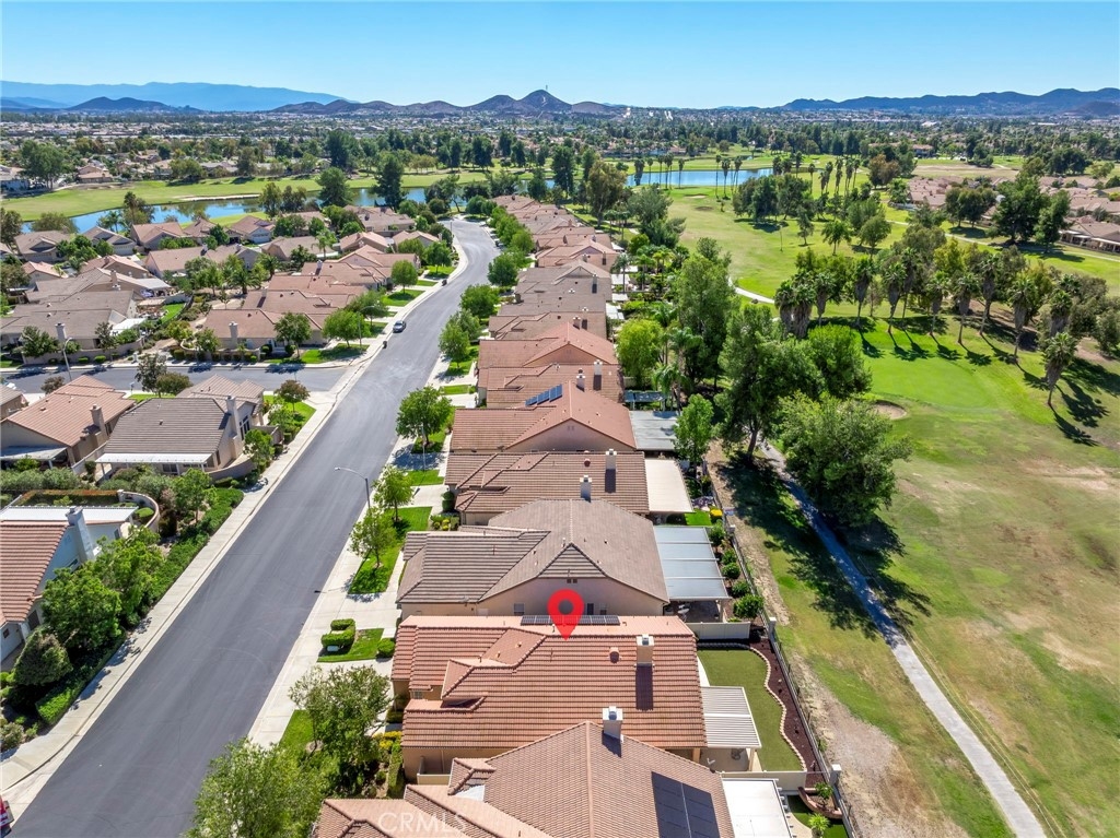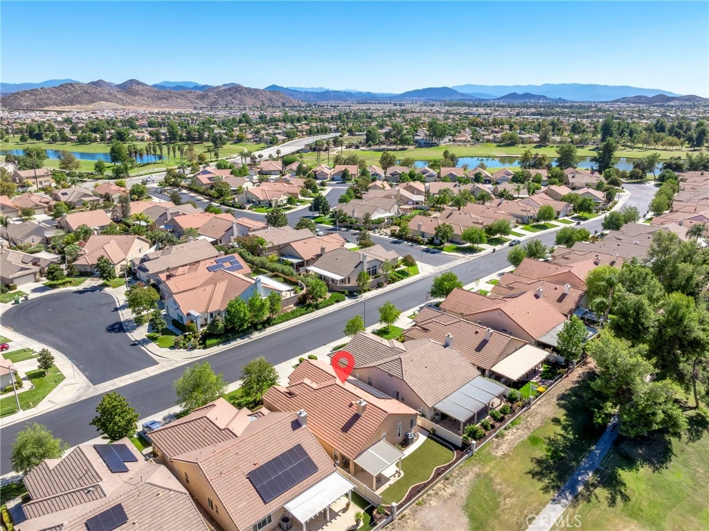This beautifully maintained single-story home is located directly on the Golf Course in the highly sought-after 55+ Resort-Style Community known as “The Oasis”. This all-electric, energy-efficient residence combines comfort and functionality with a pre-paid leased solar system, newer air conditioning installed in 2018, and a Quiet-Cool whole-house fan for maximum energy efficiency. Inside, you’ll find tall ceilings, crown molding, sun-screens, and ceiling fans throughout, creating a bright and comfortable living space. The open-concept layout features a spacious Great Room with a tile fireplace and built-in office area, ideal for working from home or managing hobbies. The Home Office could also be used as a 3rd Bedroom if needed. The eat-in kitchen offers ample cabinetry, generous counter space, and an inviting casual dining area perfect for everyday meals. The Master Bedroom suite provides a peaceful retreat with a large walk-in closet and an upgraded walk-in soaking tub installed in December 2023. The laundry room includes tile flooring, a utility sink, and extra storage. Step outside to enjoy low-maintenance landscaping with artificial turf, stamped concrete, and an alumawood patio cover with ceiling fan, overlooking the lush golf course with gorgeous mountain views. Additional highlights include an insulated garage door with built-in cabinets, a water softener, and a water heater blanket. The Guard-Gated community of Oasis offers resort-style amenities including a 22,000 sq. ft. clubhouse, pool, spa, fitness center, pickleball courts, bocce ball and a full schedule of social events and activities! The monthly HOA includes front yard maintenance and landscaping, water and trash service. The Oasis is conveniently located near shopping, dining, medical facilities, freeway access and just a short drive to the well-known Temecula Valley Wineries and Southern California Beaches, Desert, and Mountain destinations. This property truly offers it all…style, location, community amenities and functionality!