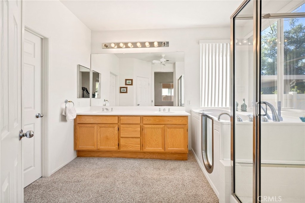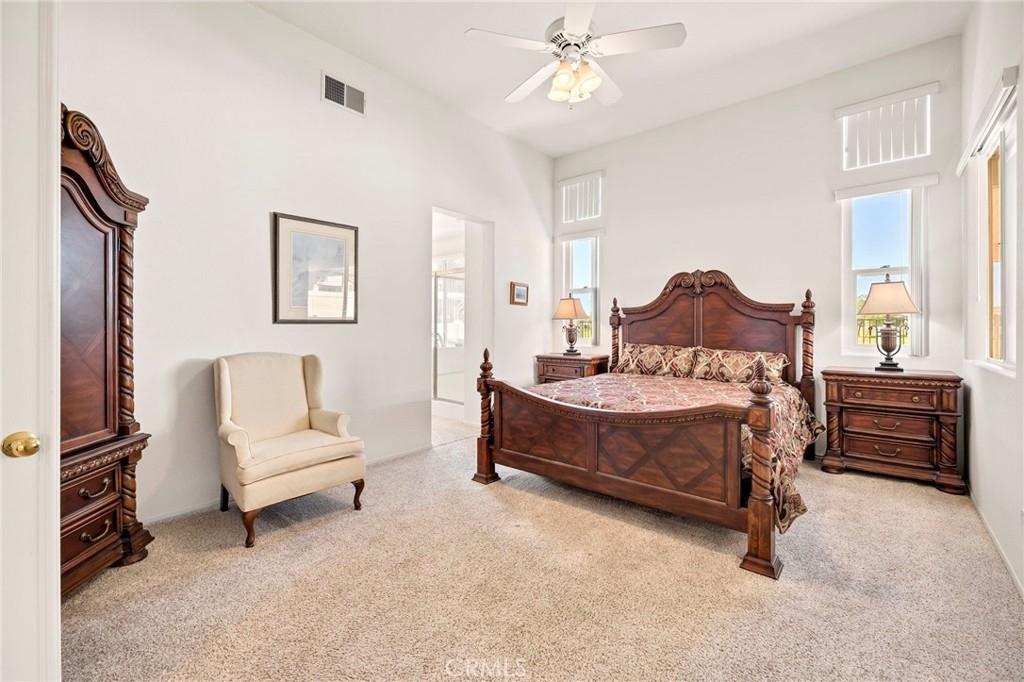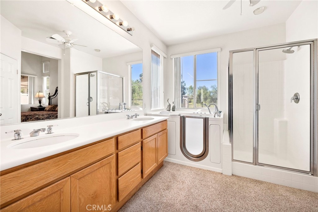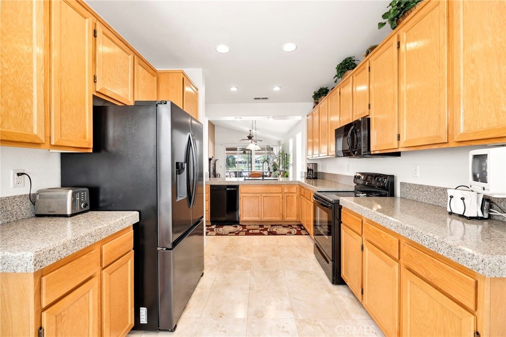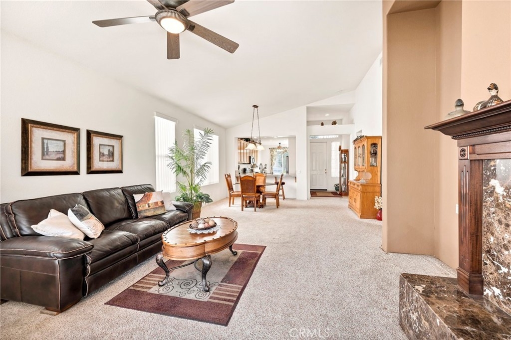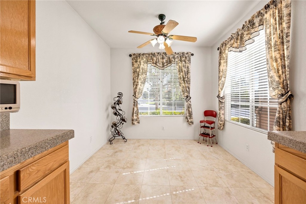 This beautifully maintained single-story home is located directly on the Golf Course in the highly sought-after 55+ Resort-Style Community known as “The Oasis”. This all-electric, energy-efficient residence combines comfort and functionality with a pre-paid leased solar system, newer air conditioning installed in 2018, and a Quiet-Cool whole-house fan for maximum energy efficiency. Inside, you’ll find tall ceilings, crown molding, sun-screens, and ceiling fans throughout, creating a bright and comfortable living space. The open-concept layout features a spacious Great Room with a tile fireplace and built-in office area, ideal for working from home or managing hobbies. The Home Office could also be used as a 3rd Bedroom if needed. The eat-in kitchen offers ample cabinetry, generous counter space, and an inviting casual dining area perfect for everyday meals. The Master Bedroom suite provides a peaceful retreat with a large walk-in closet and an upgraded walk-in soaking tub installed in December 2023. The laundry room includes tile flooring, a utility sink, and extra storage. Step outside to enjoy low-maintenance landscaping with artificial turf, stamped concrete, and an alumawood patio cover with ceiling fan, overlooking the lush golf course with gorgeous mountain views. Additional highlights include an insulated garage door with built-in cabinets, a water softener, and a water heater blanket. The Guard-Gated community of Oasis offers resort-style amenities including a 22,000 sq. ft. clubhouse, pool, spa, fitness center, pickleball courts, bocce ball and a full schedule of social events and activities! The monthly HOA includes front yard maintenance and landscaping, water and trash service. The Oasis is conveniently located near shopping, dining, medical facilities, freeway access and just a short drive to the well-known Temecula Valley Wineries and Southern California Beaches, Desert, and Mountain destinations. This property truly offers it all…style, location, community amenities and functionality!