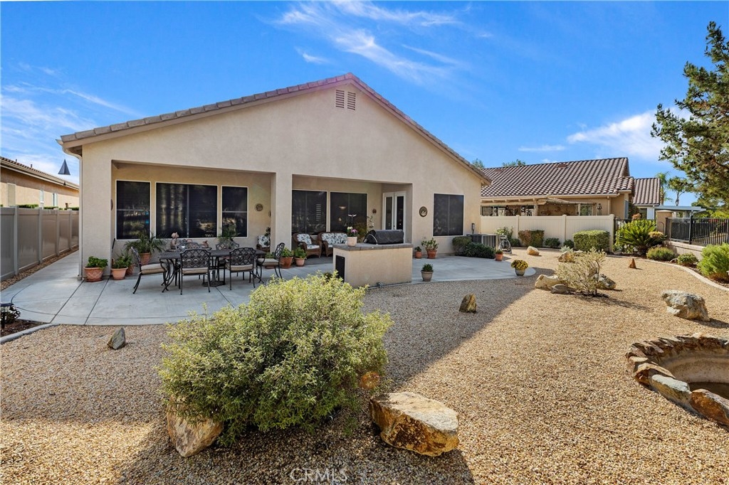 This remarkable 2 Bedroom, 3 Bath Single-Story home is located in the Premier 55+ Gated Oasis Active Adult Community. From the moment you arrive you know this home is one-of-a-kind which is located on a lot with a Golf Course Panoramic View and a Golf Cart Garage. The curb appeal of this stunning home sets itself apart. You are welcomed by the warmth of the Courtyard & Leaded Glass Front Door. The interior keeps pace with the impressive entrance. The Living Areas are Open and are ideal for Easy Entertaining while warm and welcoming. This well-appointed home offers beautiful Diagonal Tile Floors in the living areas. Fully Remodeled Stainless & Granite Chef’s Kitchen with Double Ovens & Pull Out Shelves; Custom Cabinetry, Professional Grade Appliances; Custom Fireplace, Custom Lighting; High Ceilings; Custom Baseboards & Crown Molding & Custom Window Coverings. The master suite is remarkable offering spacious elegance with a large Walk-in Closet. The Custom Five Piece Master Bath features Clear Glass Shower & the Powder Room and 2nd Bath also with newer finishes. Other custom features: Leaded Glass Windows, Surround Sound, Built in Desk & Media Niche, Custom Closets, Garage Storage, Sun Screens, Newer HVAC, Rounded Door Frames & Garden Fountain. The immaculate gardens are water-saving friendly, with a spectacular Golf Course View. No detail has been missed! The Luxurious Finishes Throughout & the care given this home will appeal to the most discriminating buyer.