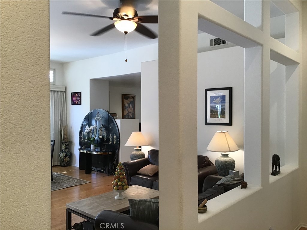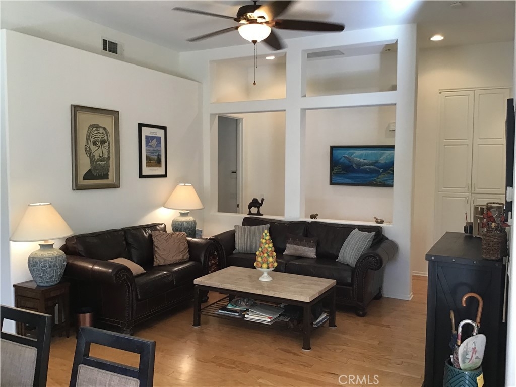 You absolutely must see this lovely home in the fantastic Guard-Gated 55+ active senior community of the Oasis! This is the sought after Curaçao model, a single story 2085sf 2br, 2.5ba excellent floor plan. This home has dynamic architectural features and is very inviting. Inside there is a living room, dining area and office/den with double doors, and a great family room with fireplace open to the kitchen. There you’ll find a large kitchen island with sink, under cabinet lighting, oven, microwave, dishwasher, and the refrigerator is included. Adjacent to the entry is a private hallway to the guest suite bedroom and guest bath. The main bedroom is spacious and is en-suite style, as it opens to the main bath, with dual sinks, bathtub, walk-in shower and walk-in closet. You’ll also appreciate the inside laundry room with sink, cabinetry and a window. The finished garage houses two cars and has an auto opener. In addition this home has an alarm system for additional protection. Outside you’ll find a surprise … a beautifully crafted stamped custom concrete patio that wraps around the house and has several planter bed enclaves with fruit trees and a decorative fountain. Also there is an aluminum patio cover at the entrance and the back. Plus, all of this is in the Oasis, where you’ll enjoy a 22,500sf clubhouse featuring a formal banquet room with stage for its many clubs, activities and entertainment, an exercise room, billiards, ping pong, poker, library and more, and the Oasis is adjacent to the Menifee Lakes Country Club Golf Course! Close proximity to local shopping, restaurants and the Temecula Wine Country!
